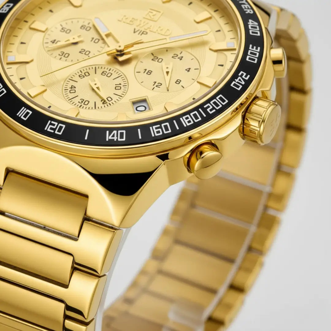 O Reward VIP Magnus combina a elegância versátil de um relógio casual masculino dourado com a precisão de um cronógrafo de alta performance. Seu design sofisticado, presença marcante e acabamento refinado transformam cada segundo em uma experiência de estilo e confiança — ideal para quem busca funcionalidade com prestígio.